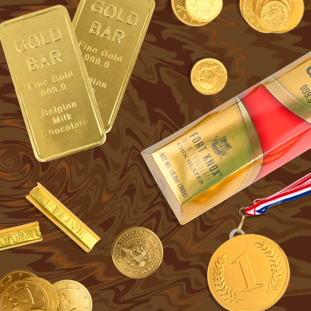 Fort Knox® Ingots are premium Belgian chocolate bars, each weighing 1 ounce, designed to look like real gold bars 🏆🍫. These gluten-free, kosher-certified, and GMO-free treats offer a luxurious chocolate experience making you feel like you've struck gold. ⚡️