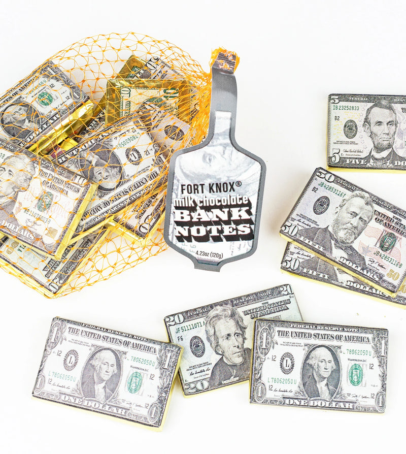 Indulge in luxurious, melt-in-your-mouth milk chocolate with Fort Knox Mini Banknotes—deliciously crafted treats wrapped to look like real money! 🏆✨ Each bite-sized piece is made with smooth and creamy milk chocolate, delivering a rich and satisfying taste in every bite. Perfect for parties, gifts, or adding a touch of golden fun to any occasion, these mini "banknotes" bring a playful twist to your sweet tooth cravings. Whether you're sharing the wealth or keeping it all to yourself, these chocolates are a richly rewarding treat! 💵