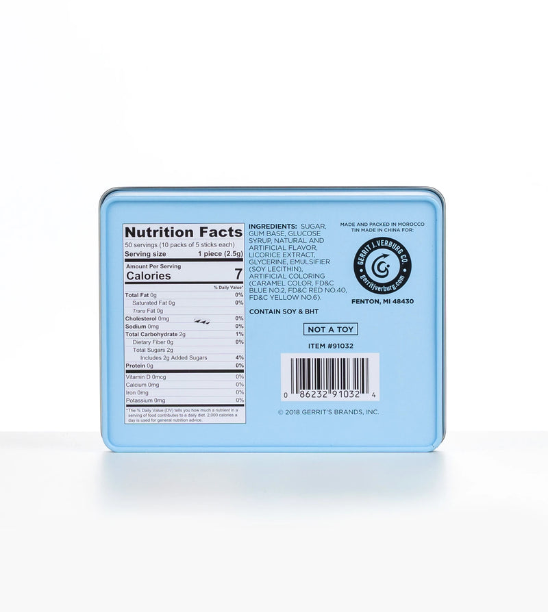 Celebrate a piece of candy history with this collector’s tin featuring the iconic Black Jack Licorice Gum—America’s first flavored chewing gum! 🖤 Since 1884, this nostalgic treat has been delighting taste buds with its unique black licorice flavor, subtly accented by anise and ginger. Inside the beautifully designed tin, you'll find 10 packs of this classic gum, perfect for sharing or keeping as a sweet treasure. Whether you're reminiscing about old-school treats or showcasing this vintage gem, the Black Jack Gift Tin adds a touch of retro charm to any collection.