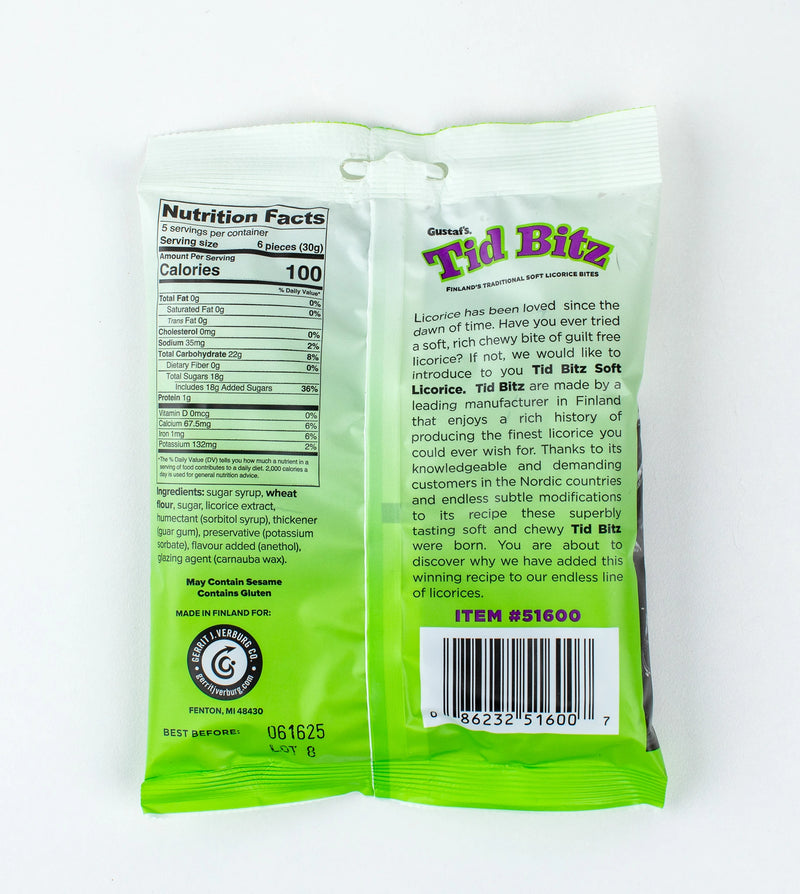 Gustaf's® Tid Bitz Licorice brings the classic soft licorice flavor from Finland, perfect for those who love rich, chewy licorice treats 🍬. These bite-sized morsels are ideal for satisfying your licorice cravings with their satisfying texture and taste. Enjoy this classic delicious, GMO-free treat. 😋