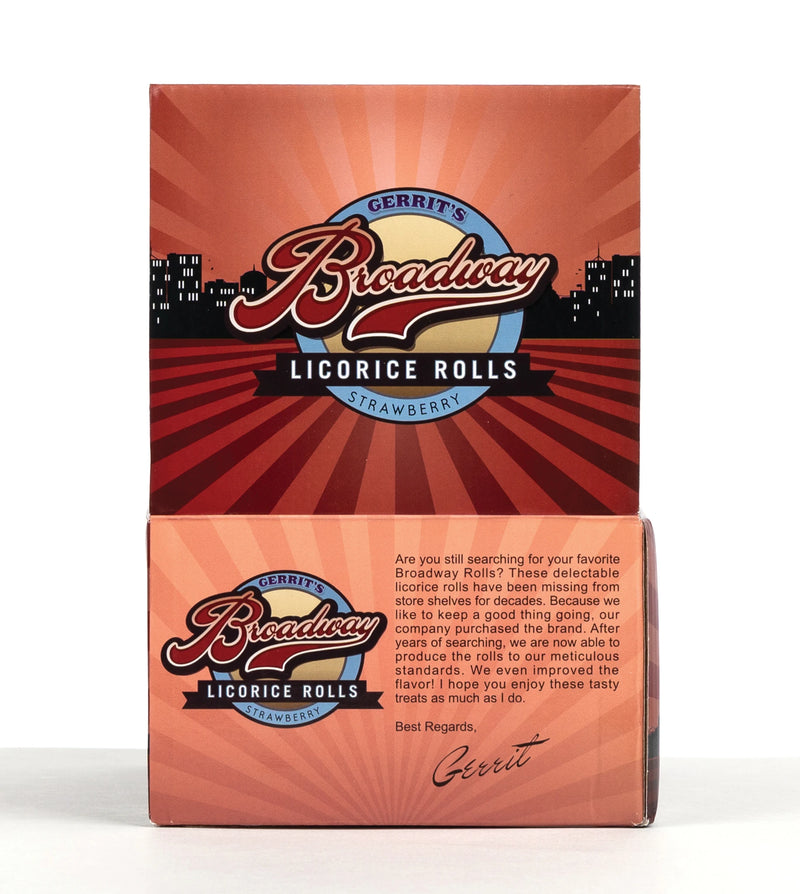 Gerrit's Strawberry Broadway Rolls are delightful licorice treats that offer a sweet strawberry flavor in a fun, rolled-up form. Each package contains fmore than four feet of delicious licorice strawberry candy. These individually wrapped, chewy rolls are GMO-free and perfect for satisfying your sweet tooth or sharing with friends. 🍓꩜