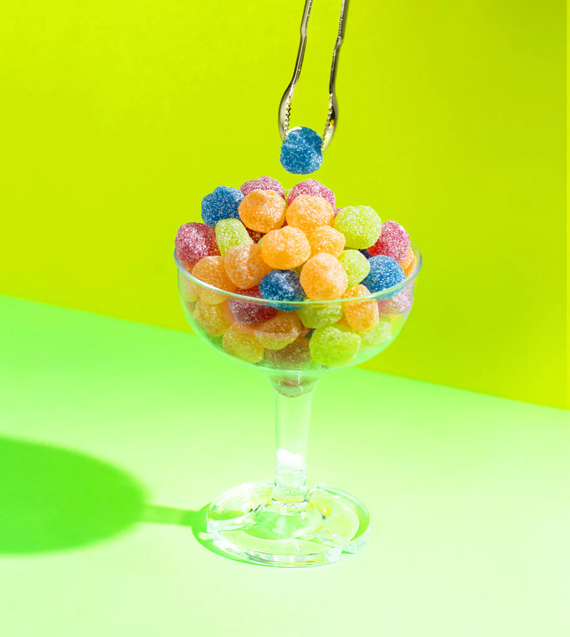 Glucose Syrup (Wheat), Sugar, Modified Starch (Gluten-free Wheat, Corn, Potato), Acids (Lactic Acid, Citric Acid, Malic Acid, Sodium Malate), Artificial Flavorings (Natural Source), Artificial Colors (Turmeric Oleoresin, Paprika Oleoresin, FD&C Blue No. 1), Colouring Food (Black Carrot Concentrate).