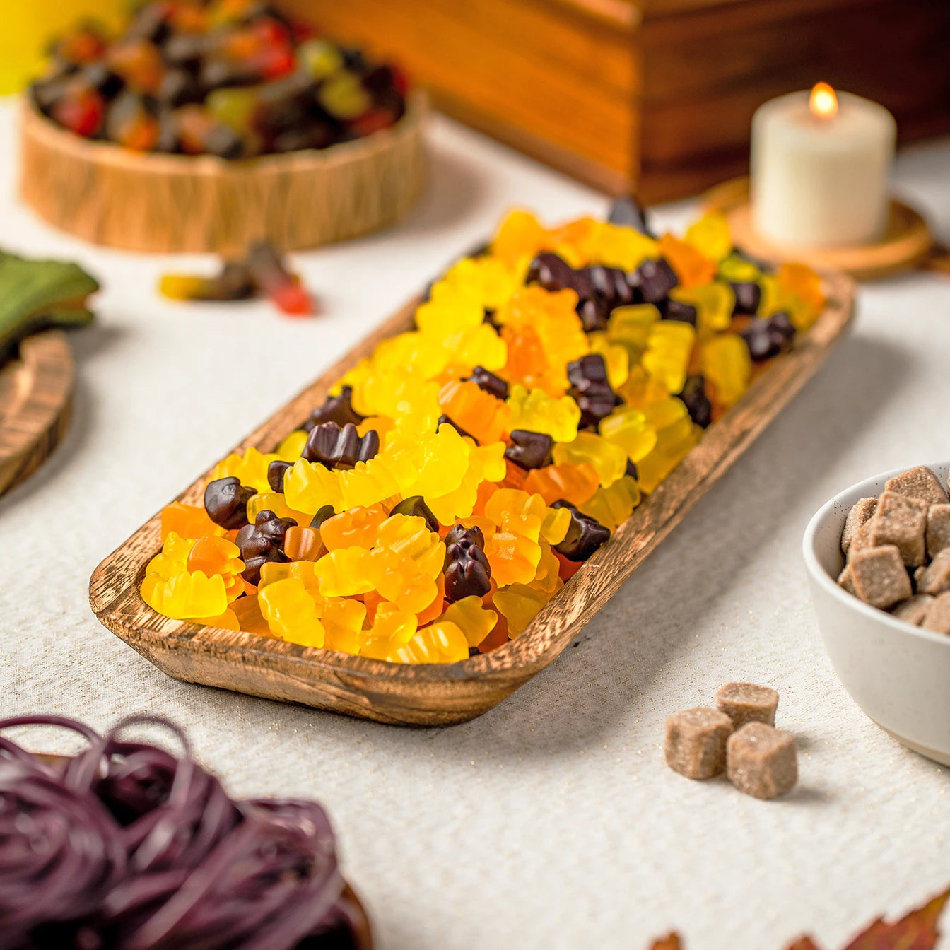 Gustaf’s® Fall Gummy Bears are sweet, lemon, orange and black currant flavored gummy bears perfect for all your autumn gatherings 🍊🍂🍋. These seasonal treats are GMO-free and come in bulk, making them a great addition to your candy collection or for party snacks.