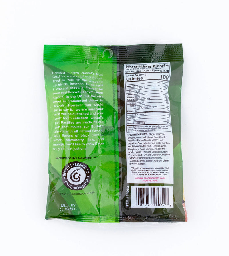 Created in 1879, Gustaf’s® Fruit Pastilles are a classic UK, chewy treat with an irresistible mix of fruity flavors including black currant, lemon, strawberry, lime, and orange 🍓🍋🍊. Made without GMOs, these pastilles offer a sweet and tangy snack that’s perfect for sharing or enjoying solo.
