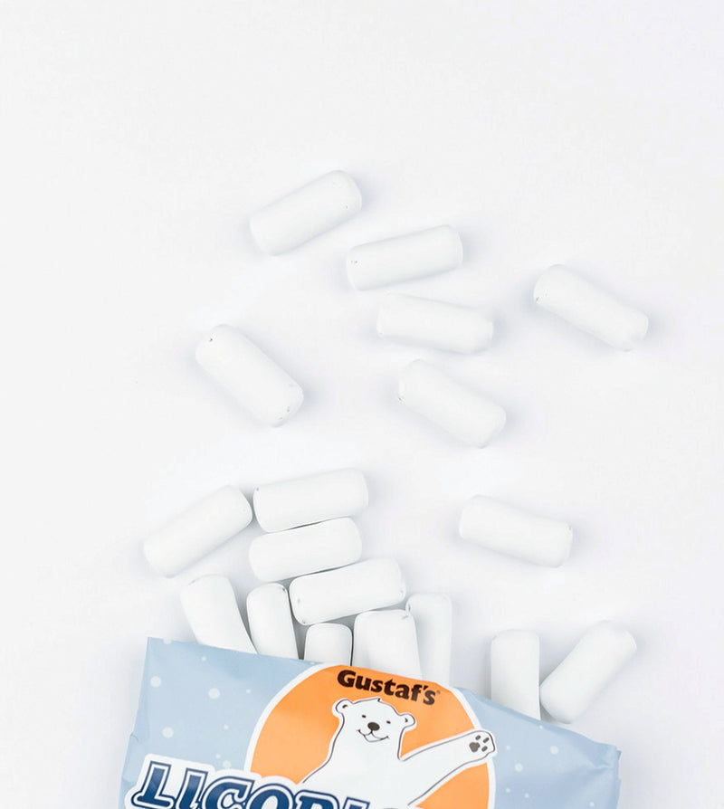 Licorice ice or schoolkrijt (Dutch for “school chalk”) is a popular Dutch candy known for its distinctive white, chalk-like coating and soft, salty licorice center. Its history is rooted in the Netherlands' deep love for licorice, or “drop”, which has been a staple in Dutch candy culture for centuries. Schoolkrijt was invented in the 60s', when Dutch confectioners began experimenting with new textures and coatings for traditional licorice. The candy typically features a crisp, sweet outer shell (often flavored with mint or vanilla) and a soft, salty licorice center.