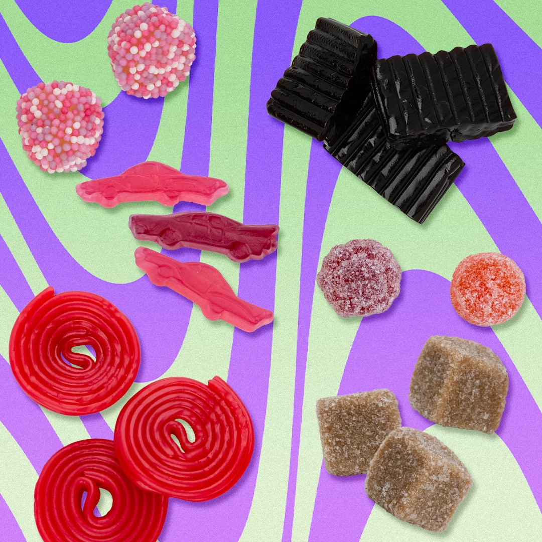 Licorice Tire Tracks are a playful twist on traditional European licorice, featuring wide, flat ribbons of chewy black licorice marked with ridges that resemble tire treads. While not tied to a specific historic origin like Licorice Allsorts or salmiak, Tire Tracks emerged as part of the modern evolution of licorice candy, especially in countries like the Netherlands and Germany, where innovation in licorice textures and shapes is common. These candies offer the bold, slightly sweet flavor of classic European licorice with a fun, textured design that makes them stand out.