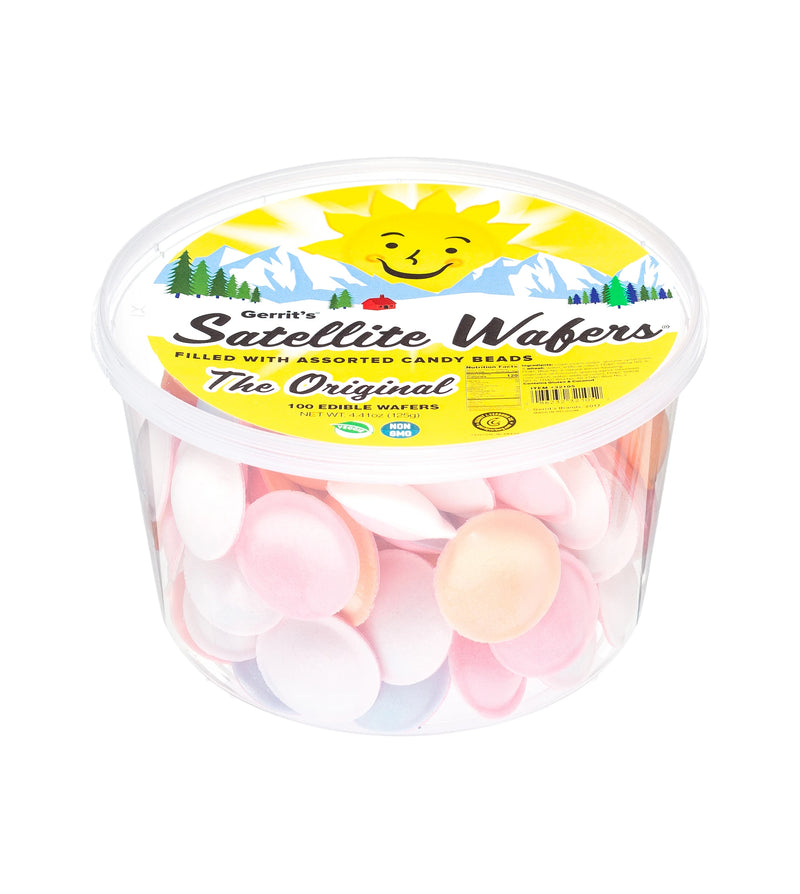 Gerrit's Satellite Wafers are a nostalgic treat that has delighted candy lovers since the 1950s. These edible cornstarch saucers are filled with colorful candy beads, offering a fun and flavorful experience. They are perfect for sharing or enjoying on your own. Gluten-free, GMO-free, and nut-free, these wafers are suitable for a wide range of dietary preferences. Whether you're revisiting a childhood favorite or discovering them for the first time, Gerrit's Satellite Wafers are a treat out of this world! 🛸