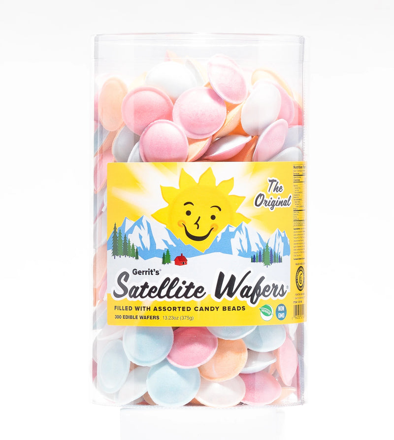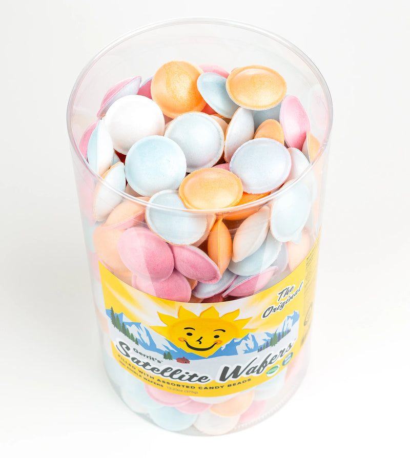 Gerrit's Satellite Wafers are a nostalgic treat that has delighted candy lovers since the 1950s. These edible cornstarch saucers are filled with colorful candy beads, offering a fun and flavorful experience. They are perfect for sharing or enjoying on your own. Gluten-free, GMO-free, and nut-free, these wafers are suitable for a wide range of dietary preferences. Whether you're revisiting a childhood favorite or discovering them for the first time, Gerrit's Satellite Wafers are a treat out of this world! 🛸
