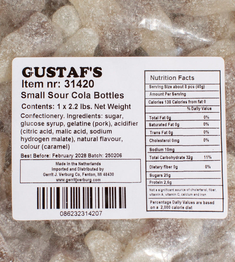 Sour Sugar Cola Bottles are the perfect mix of sweet and tangy with a zesty, sour sugar coating on the outside and a gummy cola flavor inside . These fun and flavorful treats are sure to satisfy your craving for a cola-inspired candy with a sour twist! They're GMO-free and make a great snack for anyone who enjoys a tangy delight. Cheers to your next sugary indulgence! 🥤✨